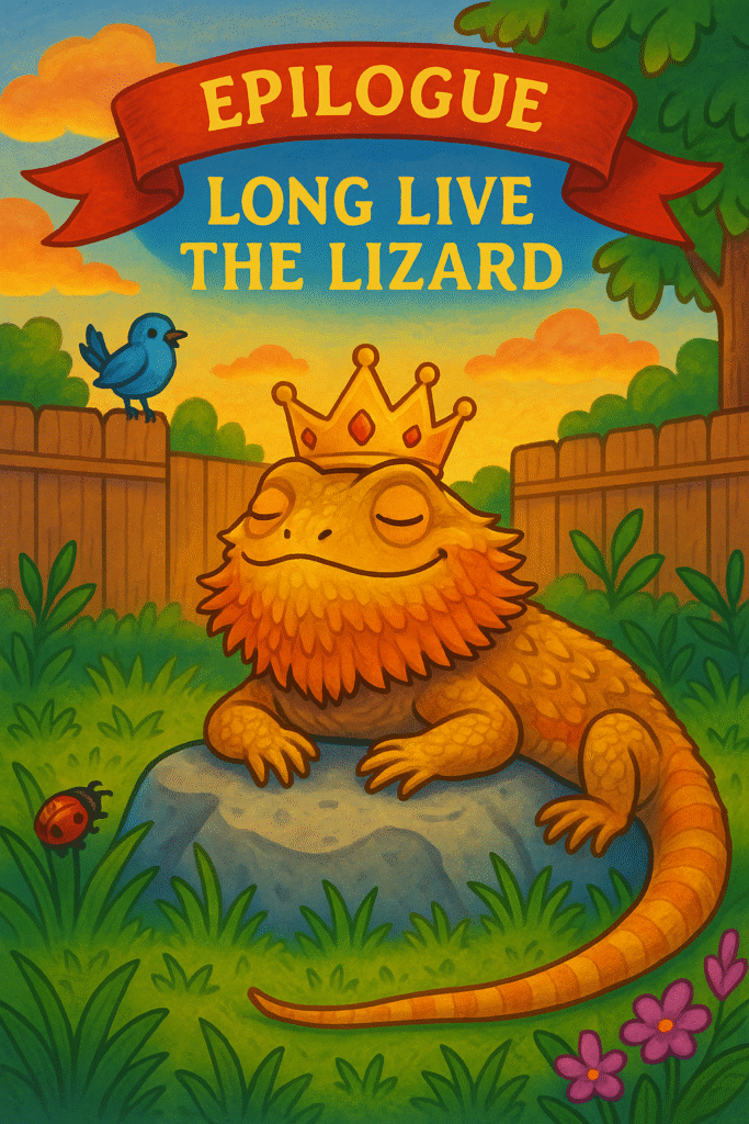 You don’t have to be big, scary, or serious to be important. Sometimes, a silly lizard with a crown and a big imagination can be the king of laughter — and hearts.